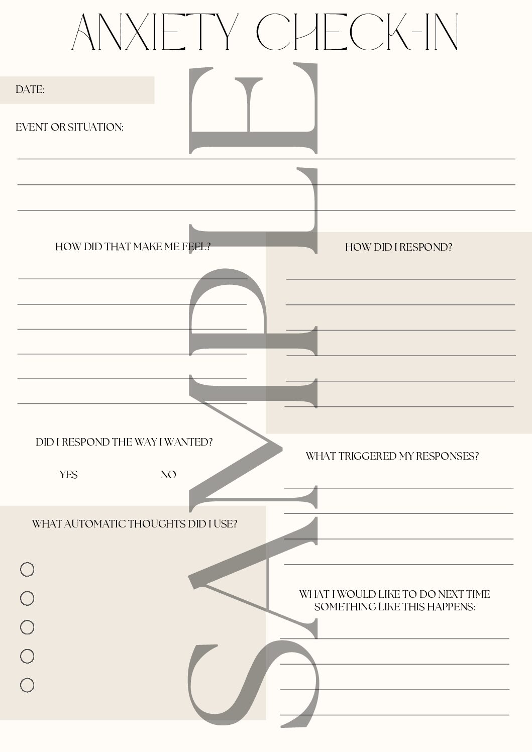 Anxiety Check-In Worksheet